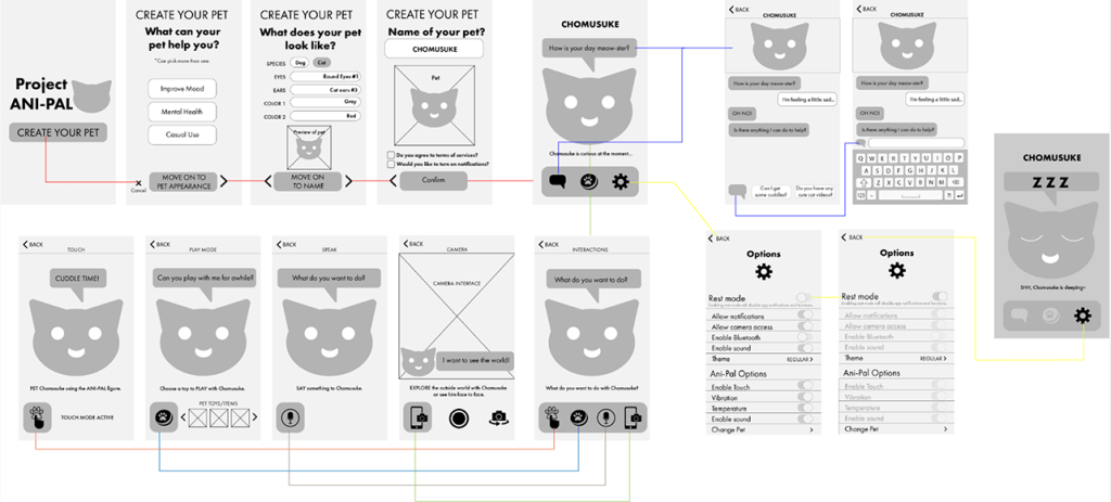 The mobile app is intended to serve as a companion medium to interact with the Anipal, aside from the physical pet toy device. Taking inspiration with a variety of activities/interactions that can be performed between the user and the virtual pet.