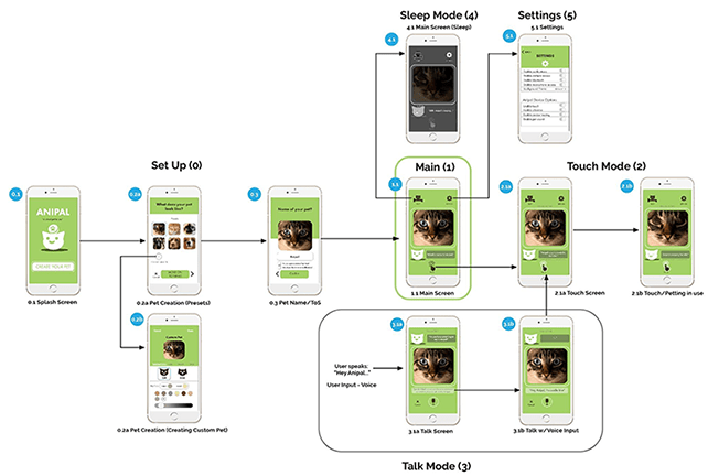 As a team, we wanted to make the user’s voice integral to the Anipal experience. Based on my robot pet experience, communicating with one’s pet can create a deeper connection and experience.